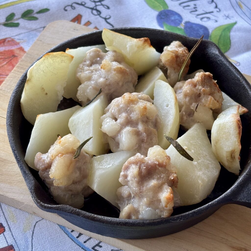 サルシッチャからでる肉汁がじゃがいもにしみしみ☺️☺️☺️